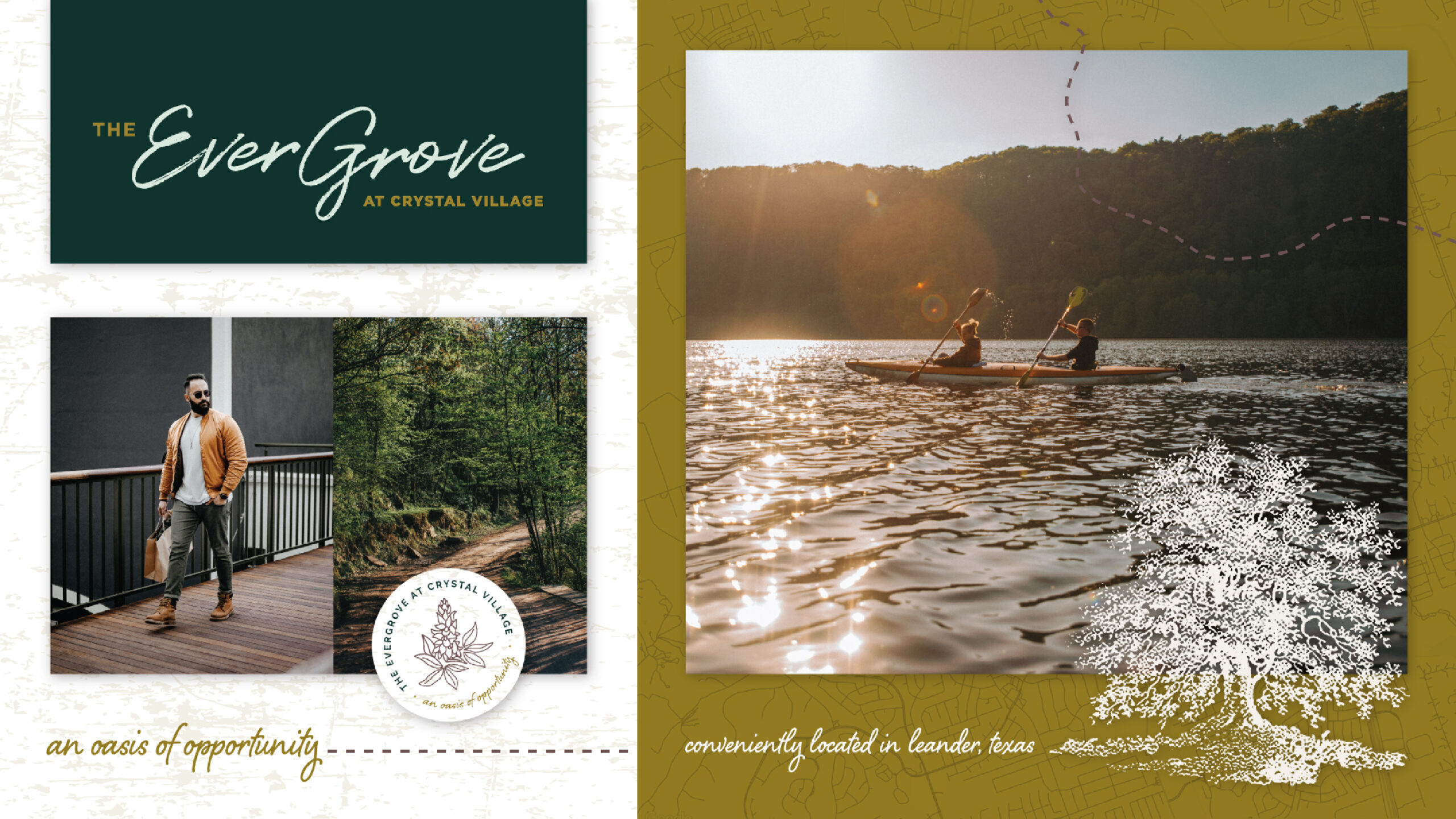 EverGrove A nature-inspired property, located next to national land & convenient big city amenities. Client: Engrain, Leon Capital Group Date: 2022 Services: Logo, Branding, Print